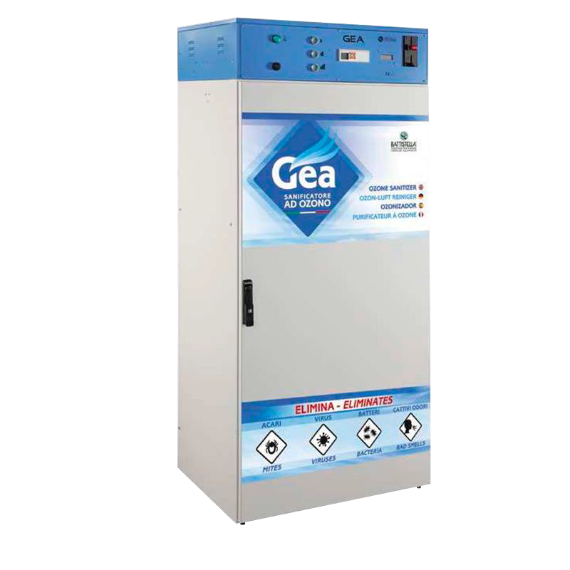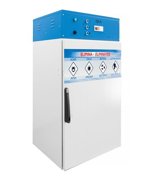 - GEA – озонирующий шкаф габаритные размеры 80×60,5×184 H см, масса 118 кг, мощность двигателя 73 Вт, мощность озоновой лампы 70 Вт, мощность УФ-лампы 70 Вт, максимальная мощность 143 Вт, напряжение 220V, 50 Hz.